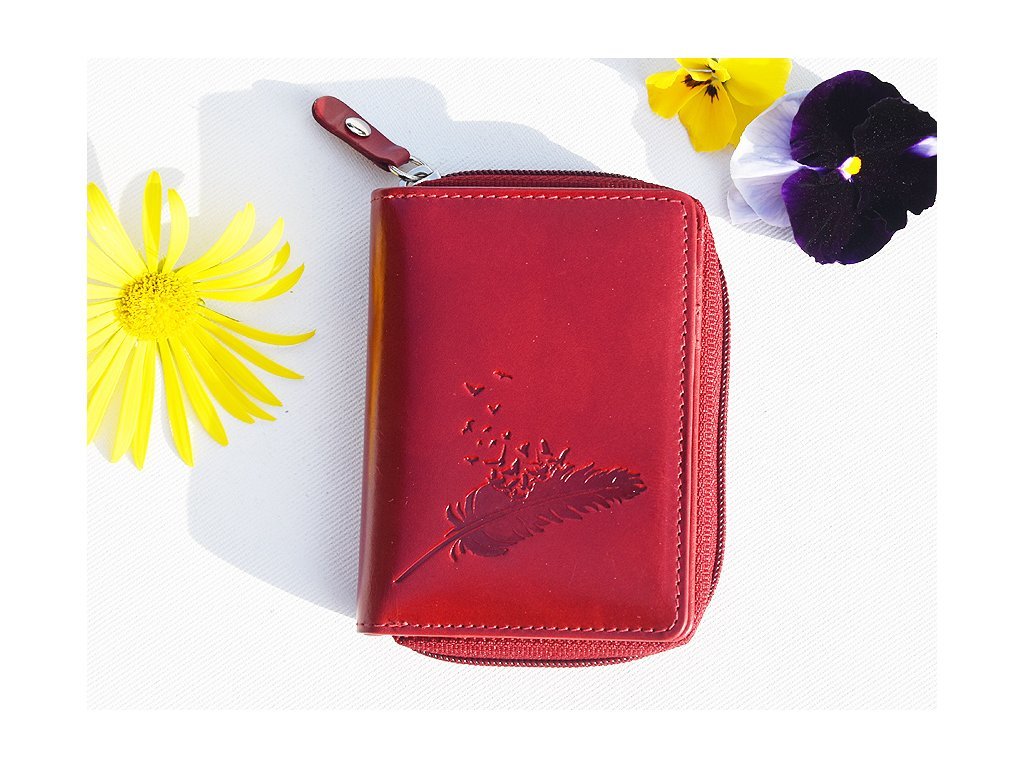 Mały portfel damski 8123 "piórko szcęścia" czerwony