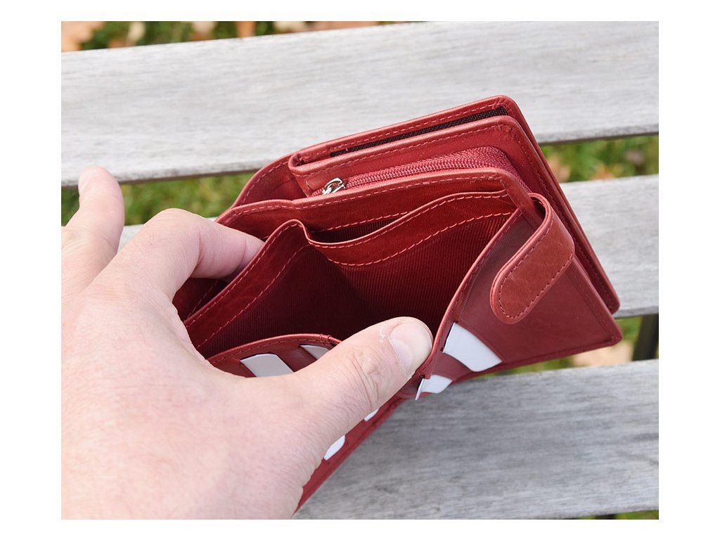 - 6x kieszeń na karty, 4x kieszeń na dokumenty, kieszeń na zamek blyskawiczny, kieszeń na monety.