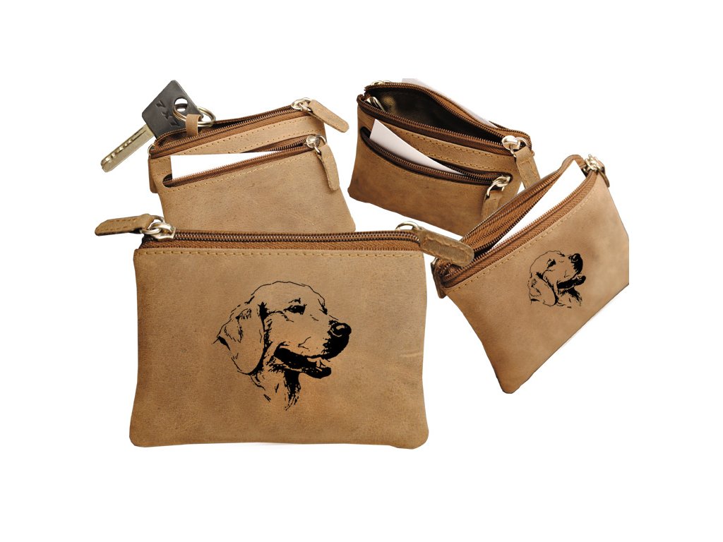 Brelok skórzany z 3 kieszeniami zapinanymi na zamek.
