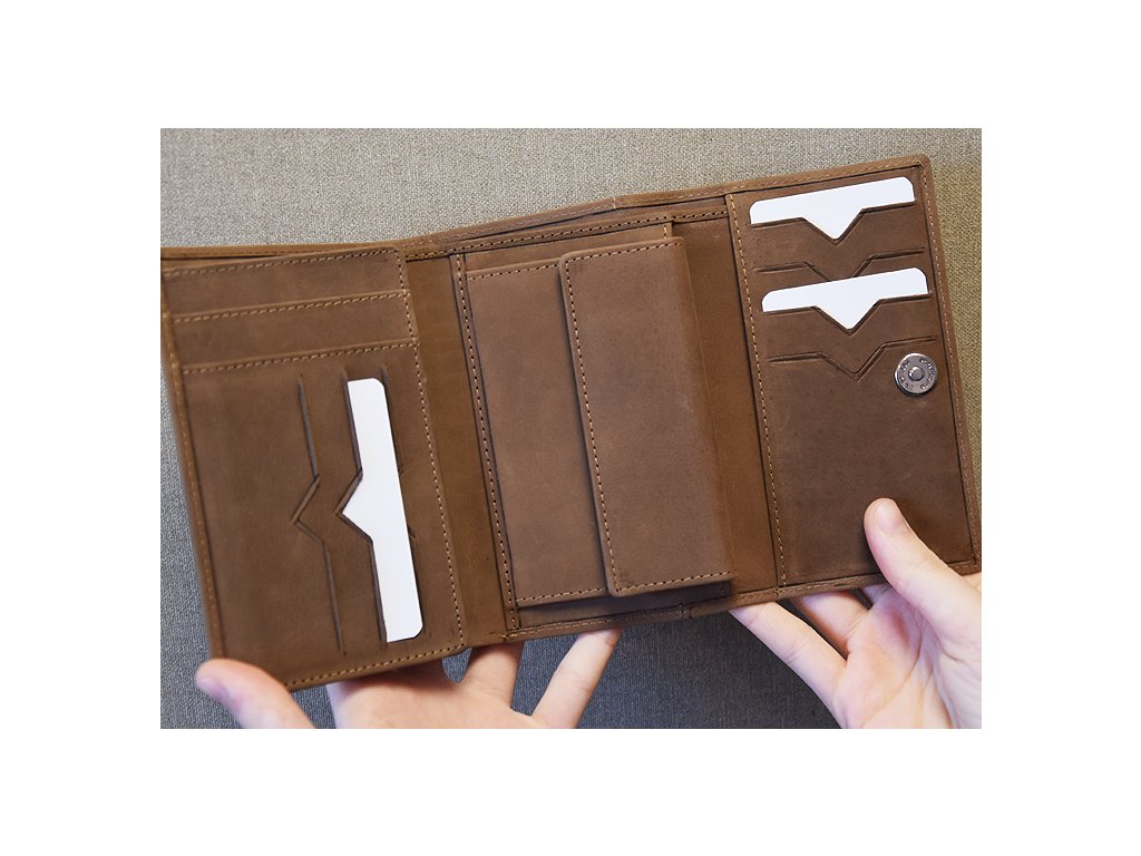 - 9x kieszeń na karty, 4x kieszeń na dokumenty, kieszeń na zamek błyskawiczny, kieszeń na monety.