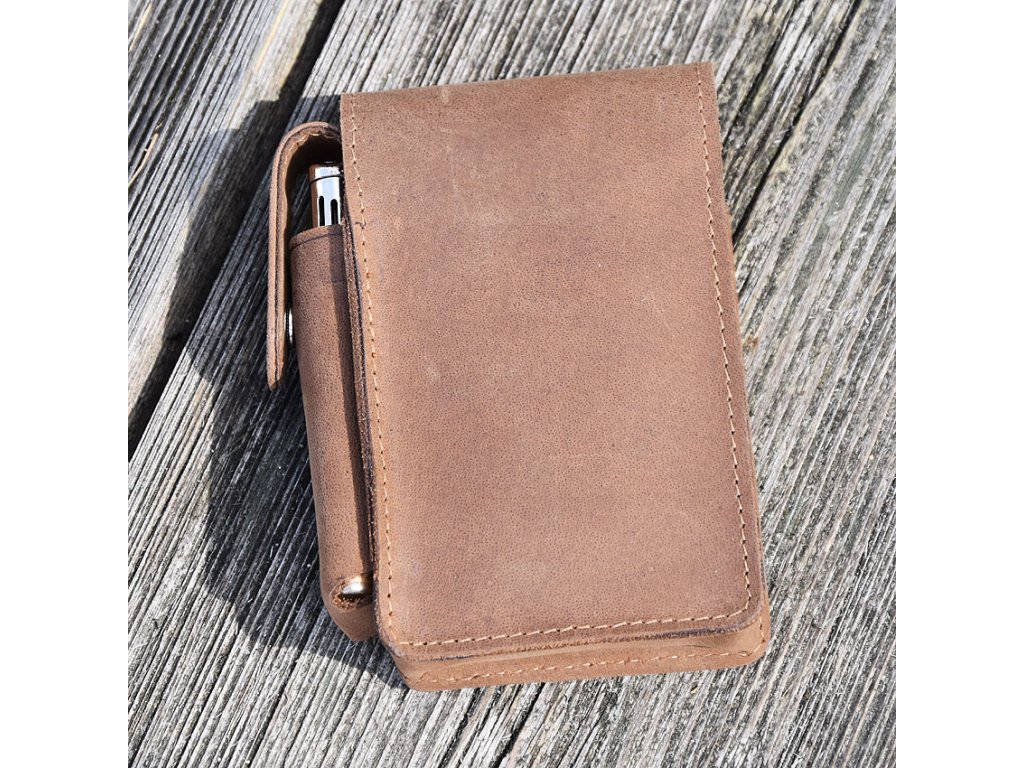 Skórzane etui na pudełko papierosów.