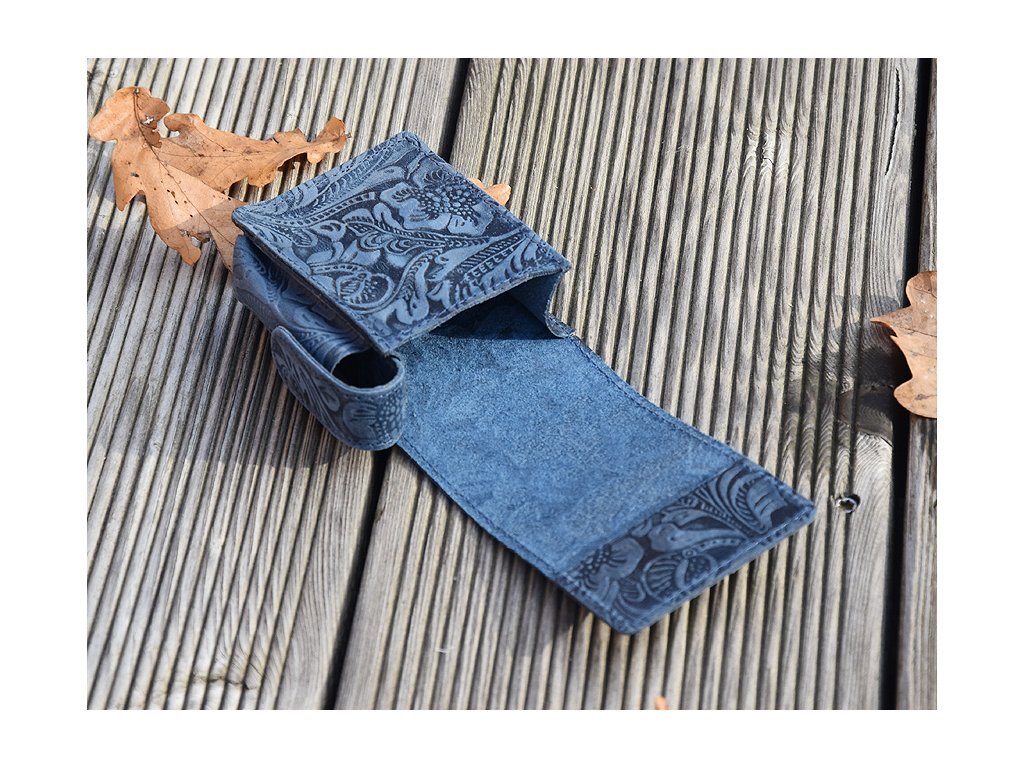 Skórzane etui na pudełko papierosów.