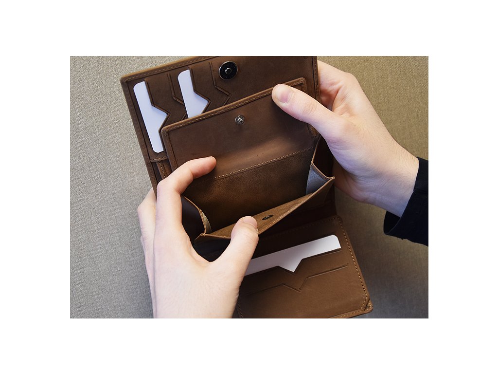 - 9x kieszeń na karty, 4x kieszeń na dokumenty, kieszeń na zamek błyskawiczny, kieszeń na monety.