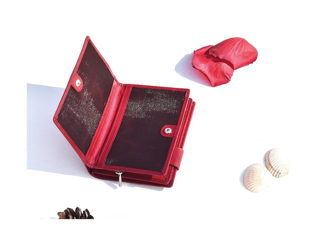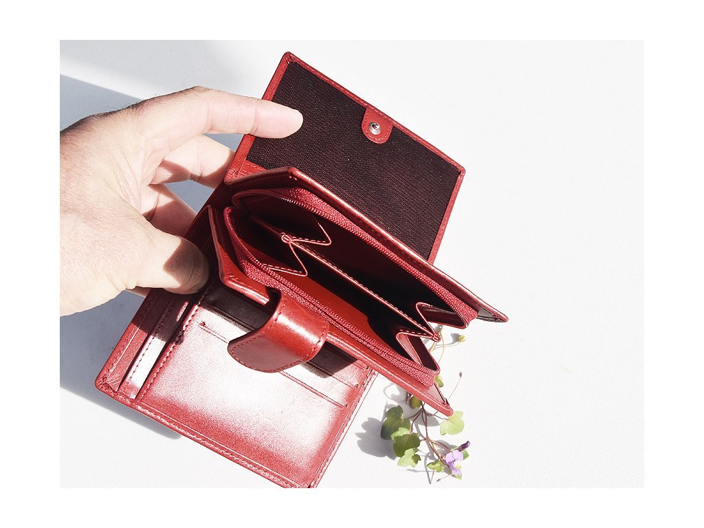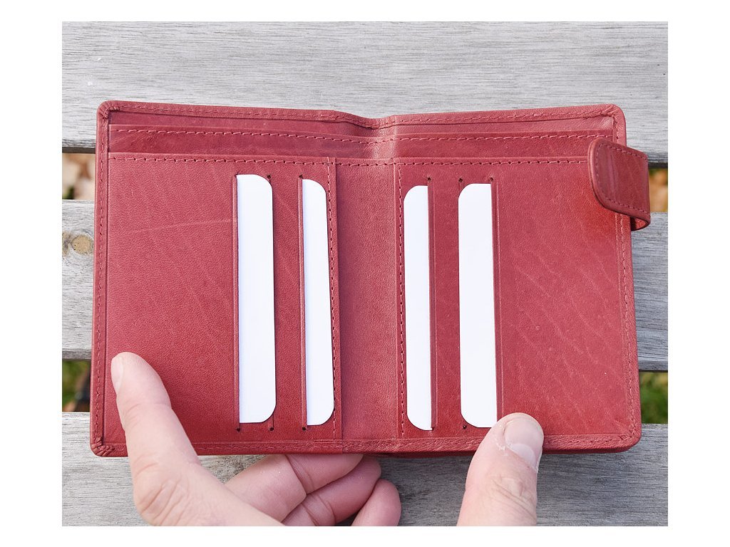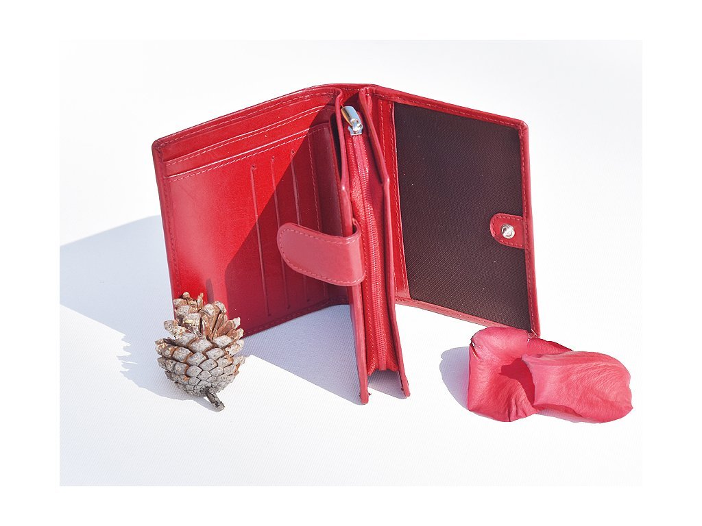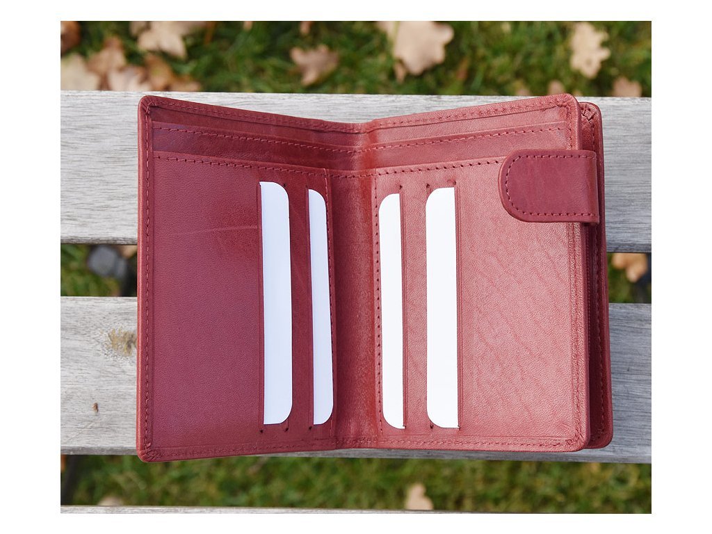 6x kieszeń na karty, 4x kieszeń na dokumenty, kieszeń na zamek blyskawiczny, kieszeń na monety.