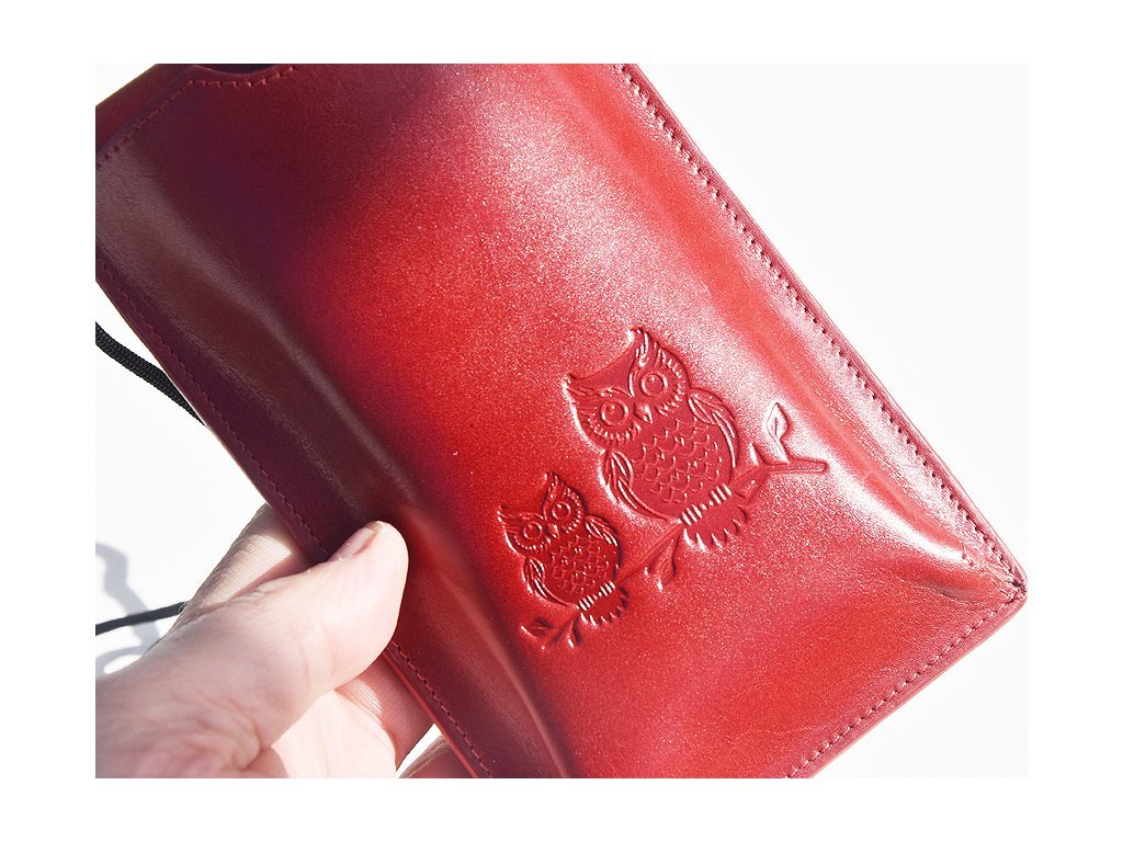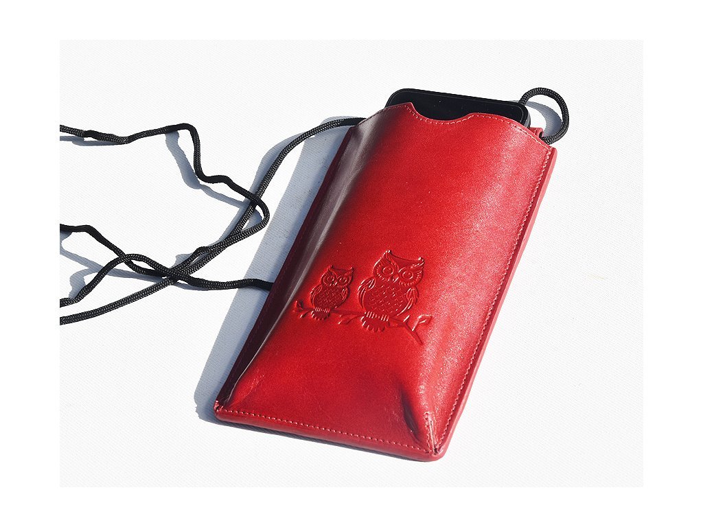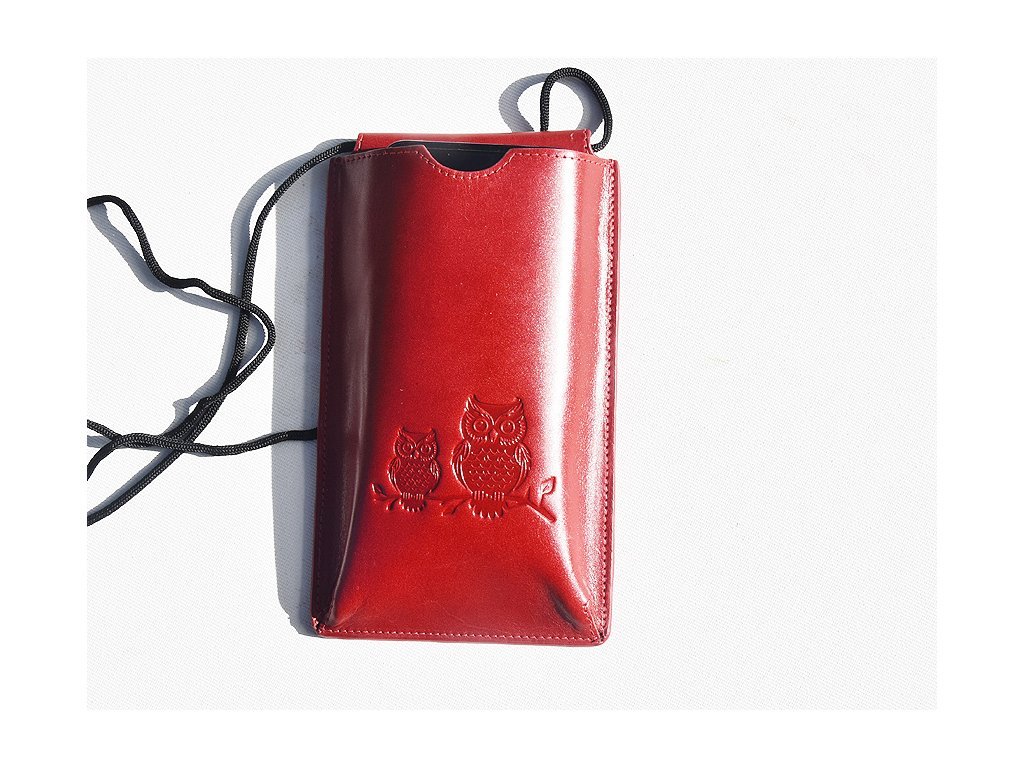 Torebka na telefon etui na ramie "Sowy" czerwona