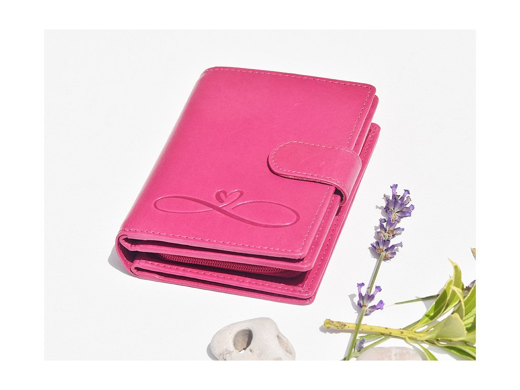 6x kieszeń na karty, 4x kieszeń na dokumenty, kieszeń na zamek blyskawiczny, kieszeń na monety.