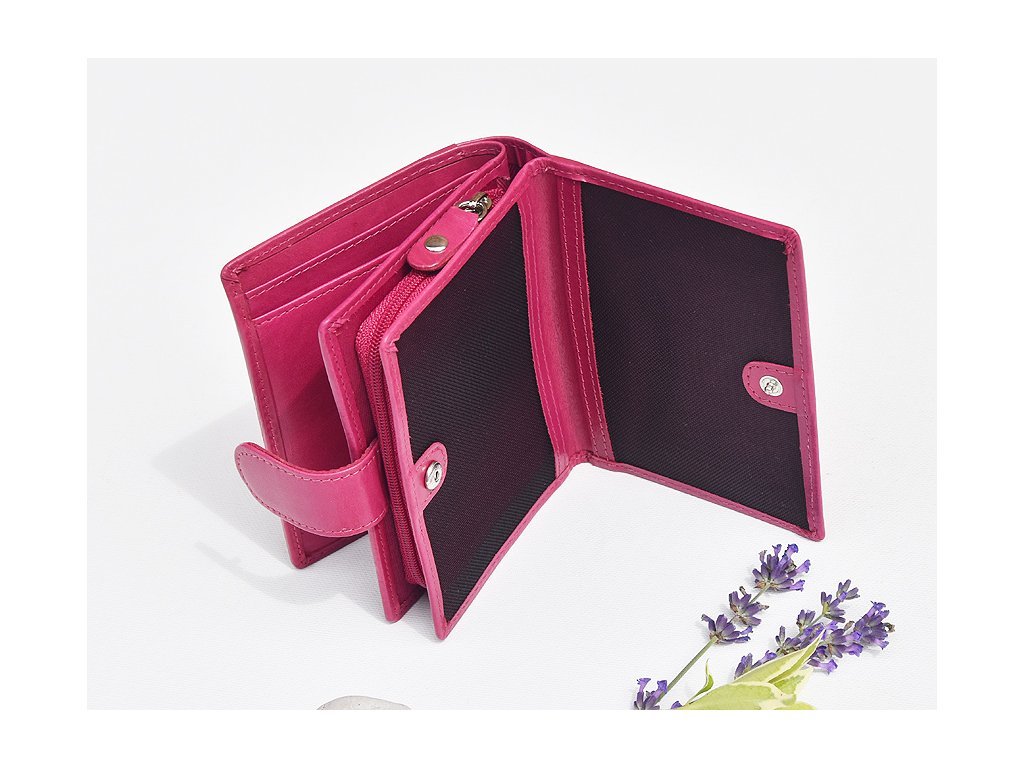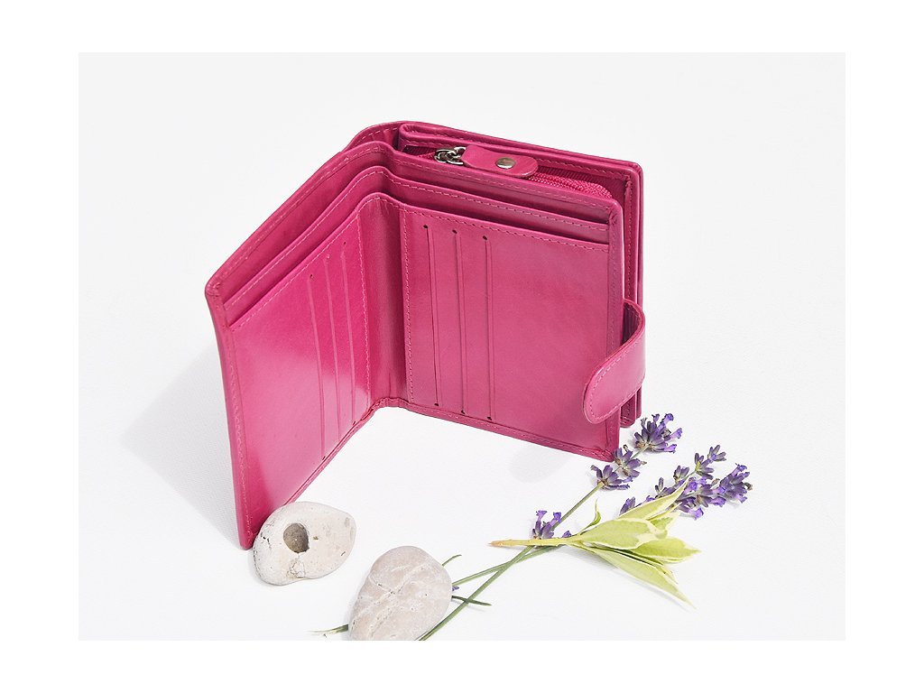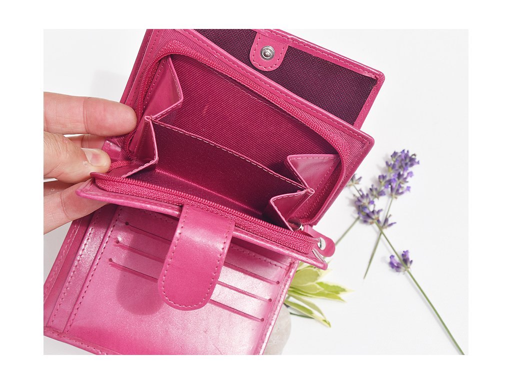 6x kieszeń na karty, 4x kieszeń na dokumenty, kieszeń na zamek blyskawiczny, kieszeń na monety.