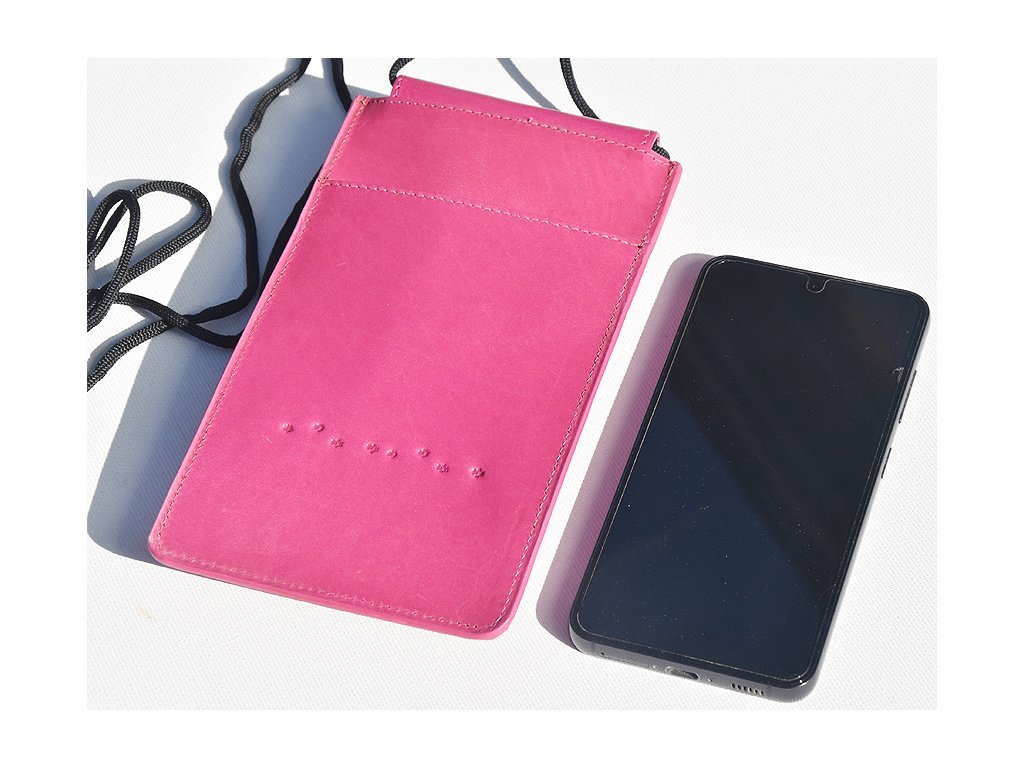 Bardzo praktyczna, a jednocześnie elegancka skórzana kieszeń na telefon komórkowy ze sznurkowym paskiem na ramię