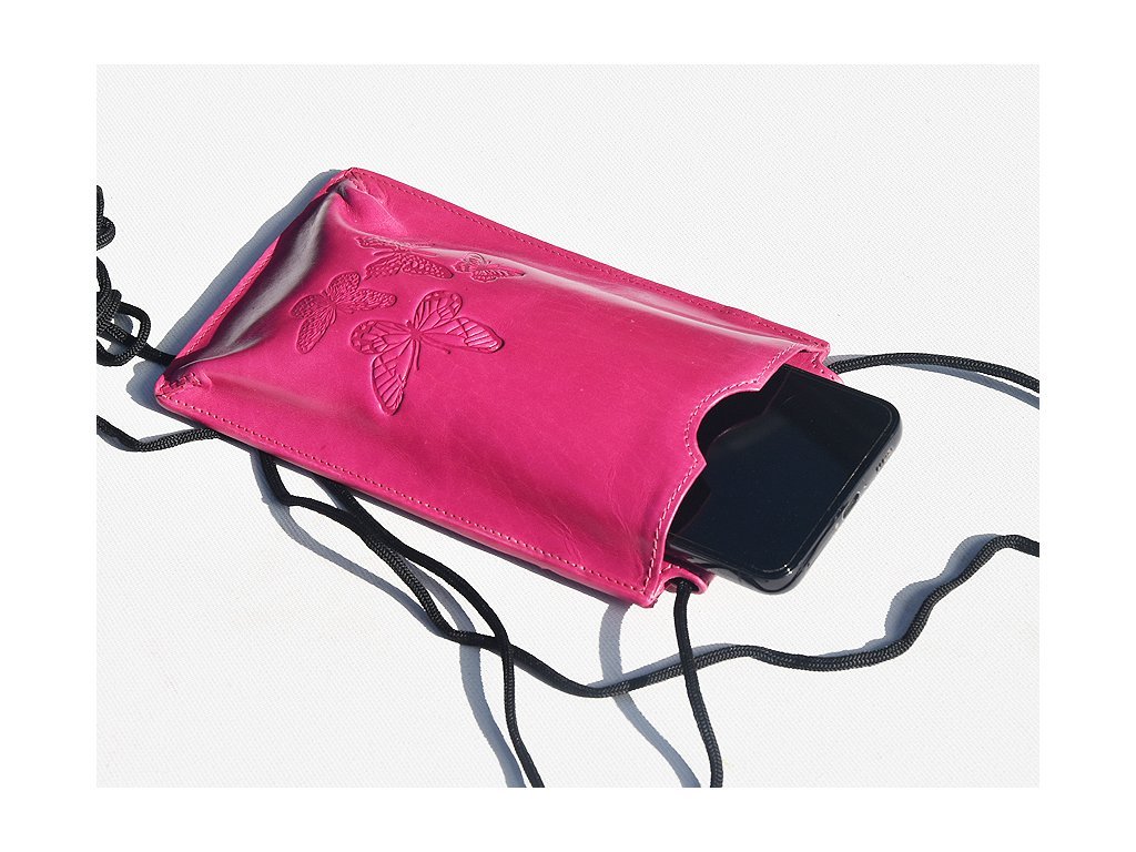 Torebka na telefon etui na ramie "Motyle" fuksja