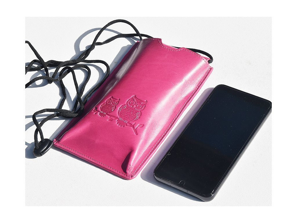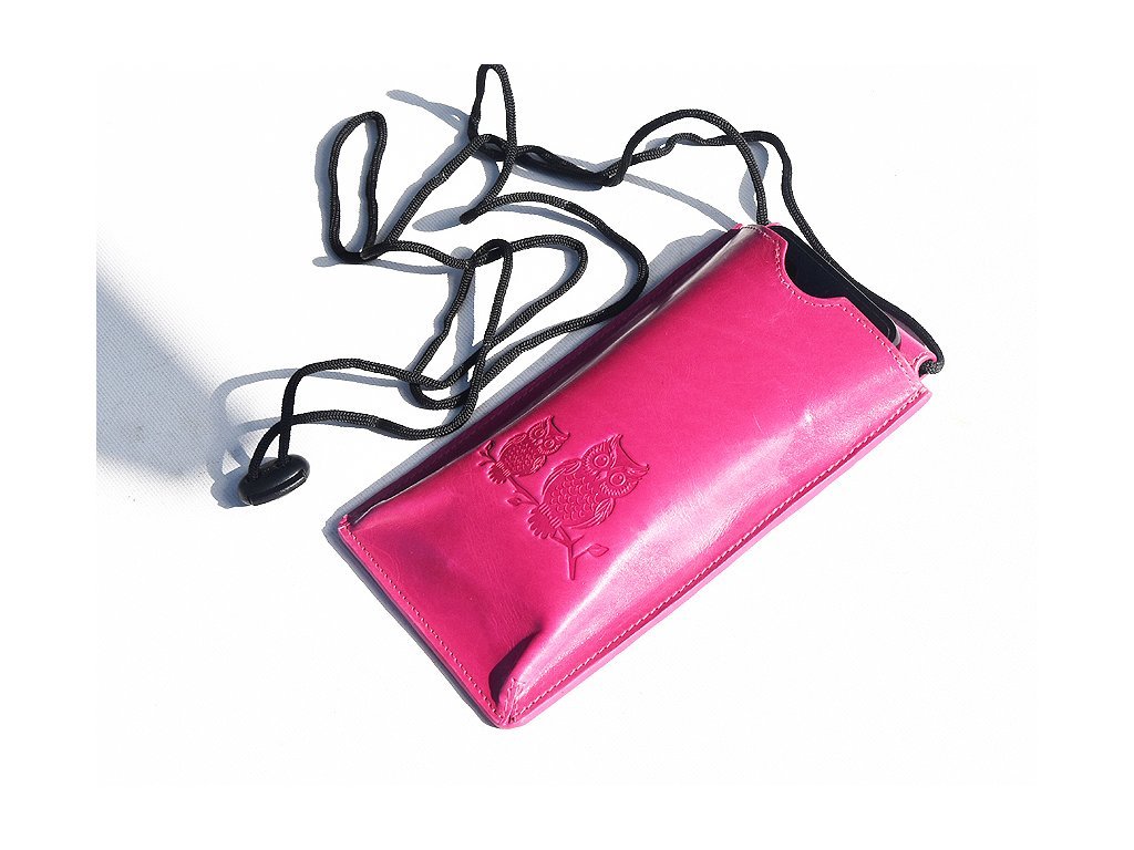 Torebka na telefon etui na ramie "Sowy" fuksja