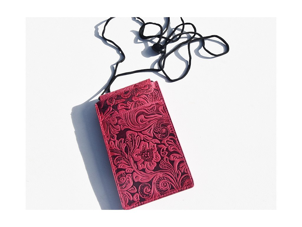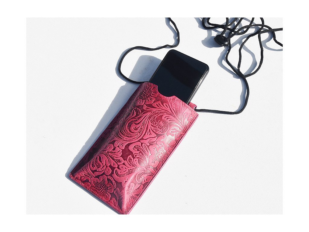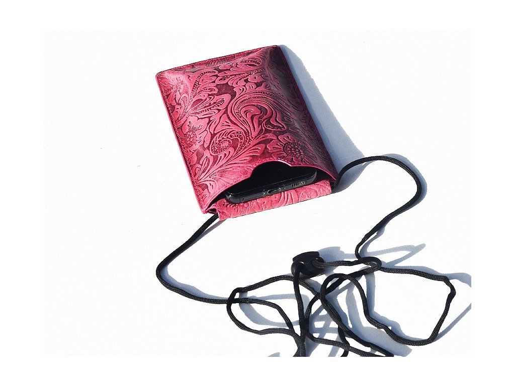 Bardzo praktyczna, a jednocześnie elegancka skórzana kieszeń na telefon komórkowy ze sznurkowym paskiem na ramię