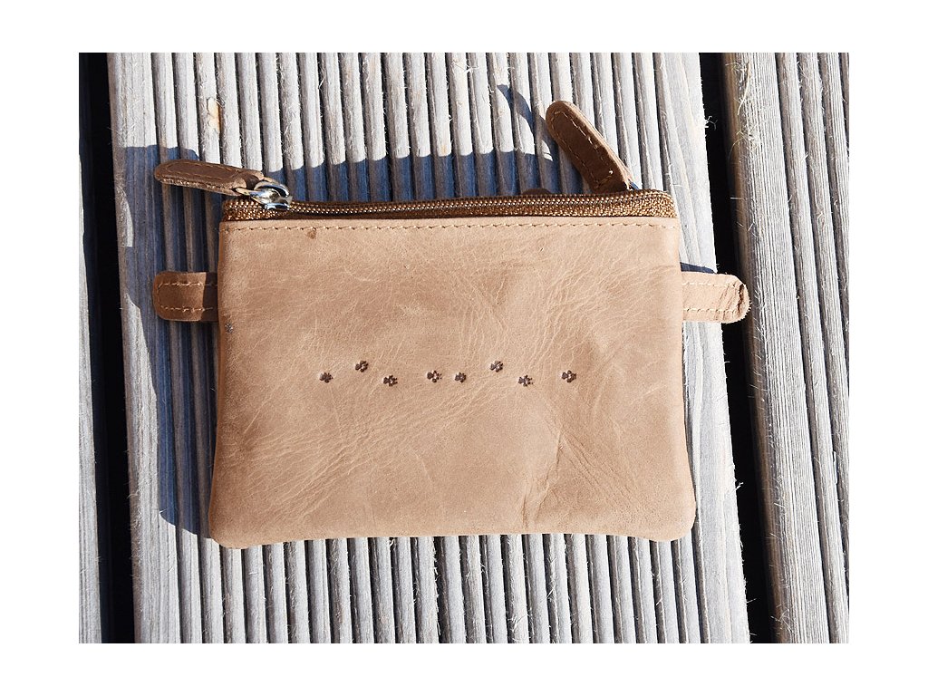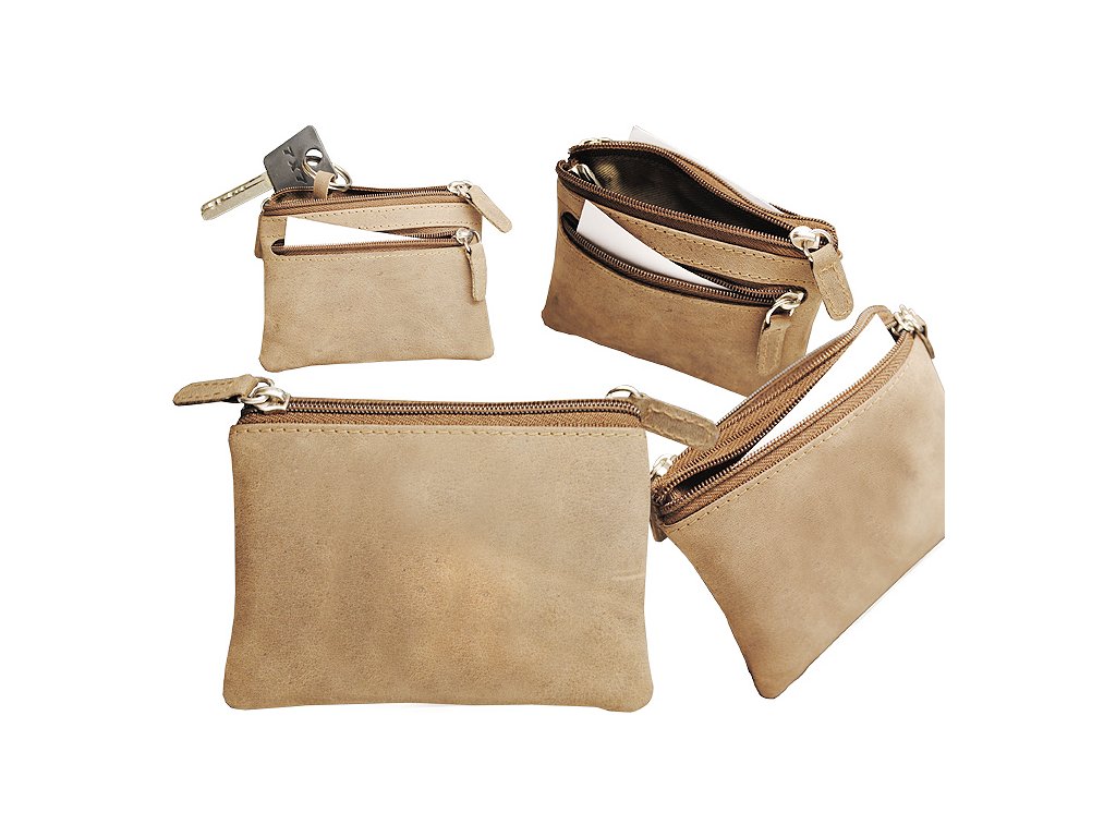 Brelok etui skórzane z 3 kieszeniami zapinanymi na zamek.