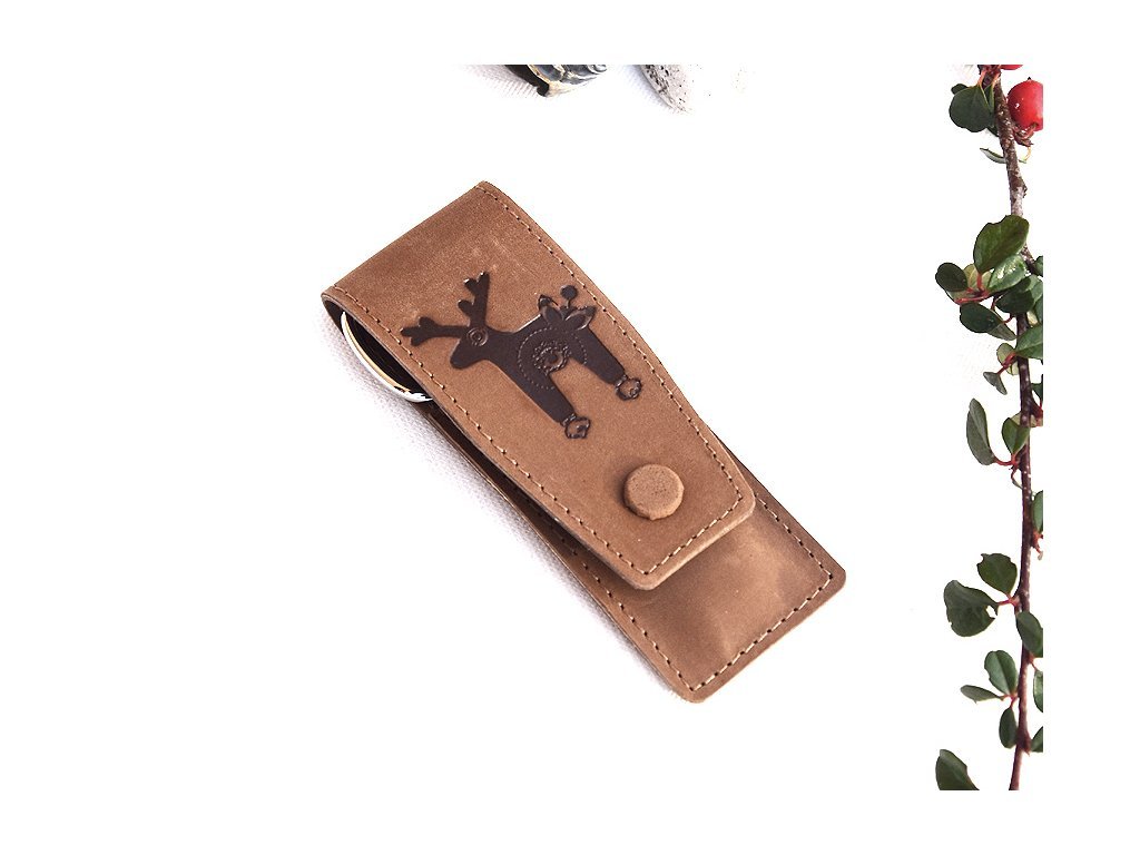 Stalowy zestaw do manicure osobistego z pilnikiem, pęsetą i nożyczkami. Zawsze gotowy do podróży w skórzanym etui.