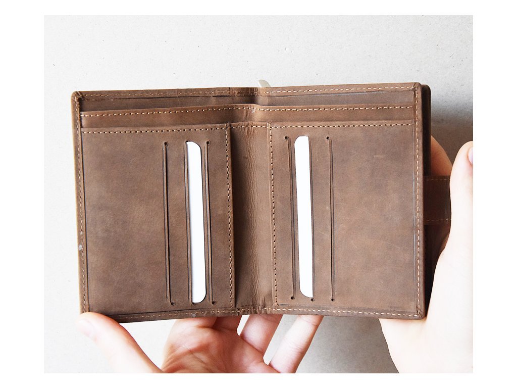 6x kieszeń na karty, 4x kieszeń na dokumenty, kieszeń na zamek blyskawiczny, kieszeń na monety.