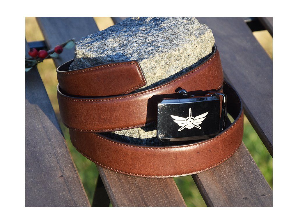 Skórzany elegancki pasek "Airplane 03" ciemnobrązowy