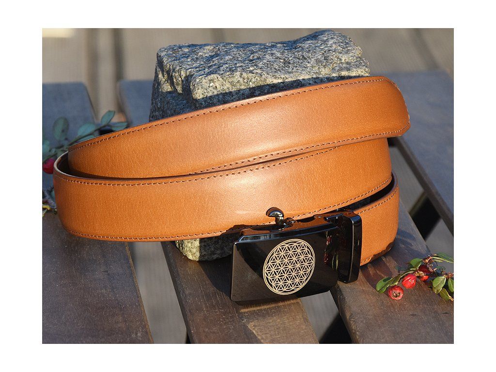 Skórzany elegancki pasek "Kwiat" jasnobrązowy