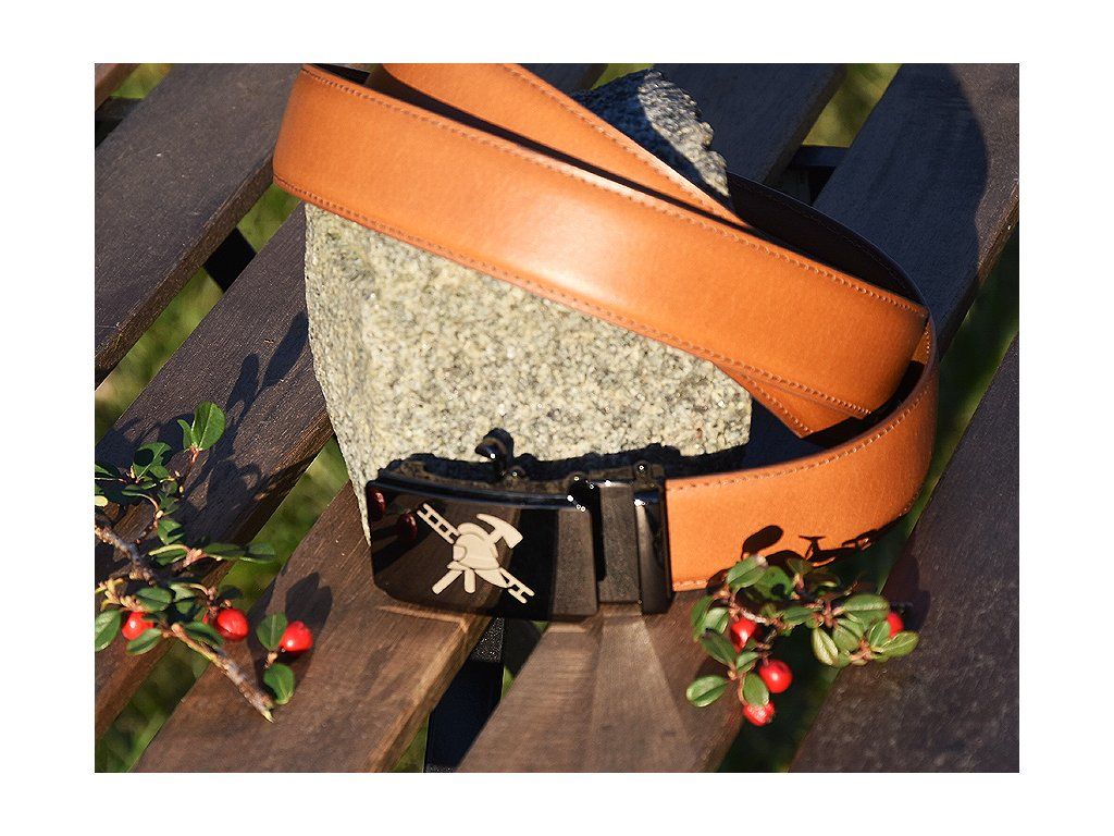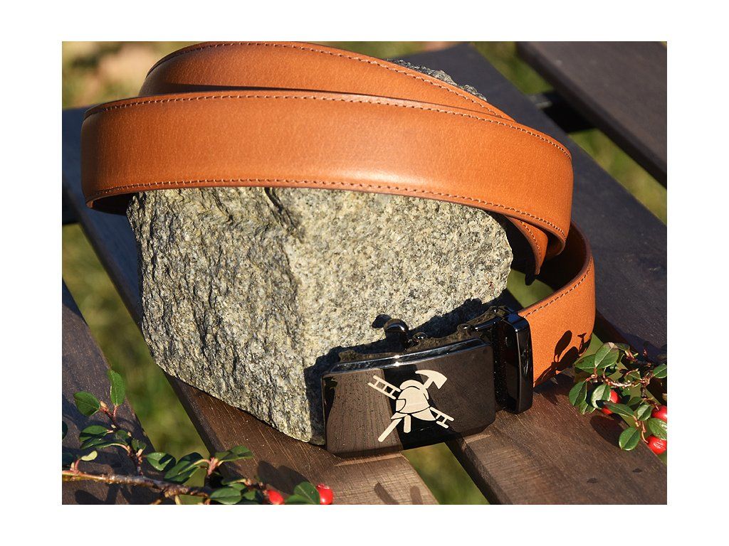 Skórzany elegancki pasek "Strażacy 02" jasnobrązowy