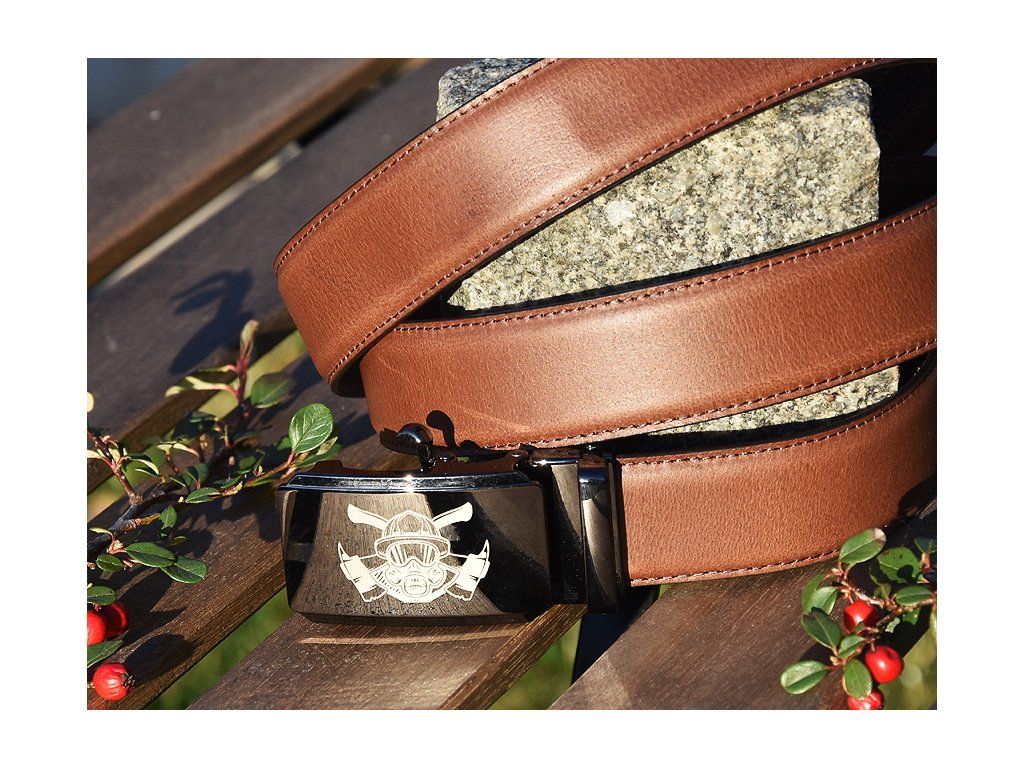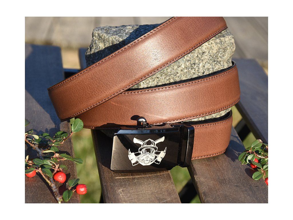 Skórzany elegancki pasek "Strażacy 05" brązowy matowy
