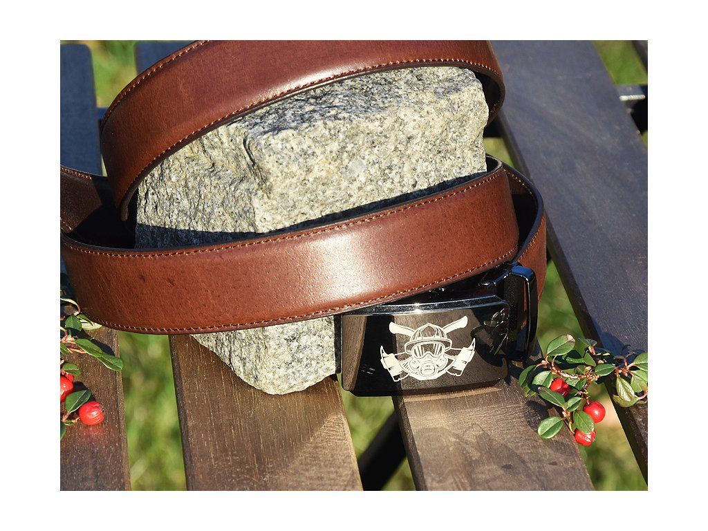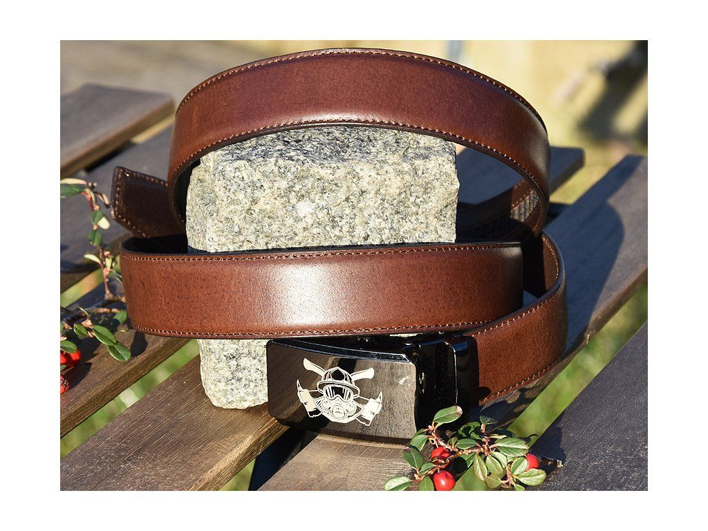 Skórzany elegancki pasek "Strażacy 05" ciemnobrązowy