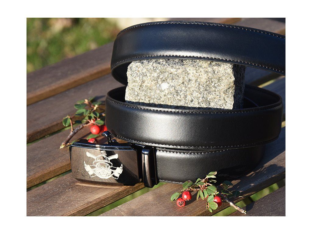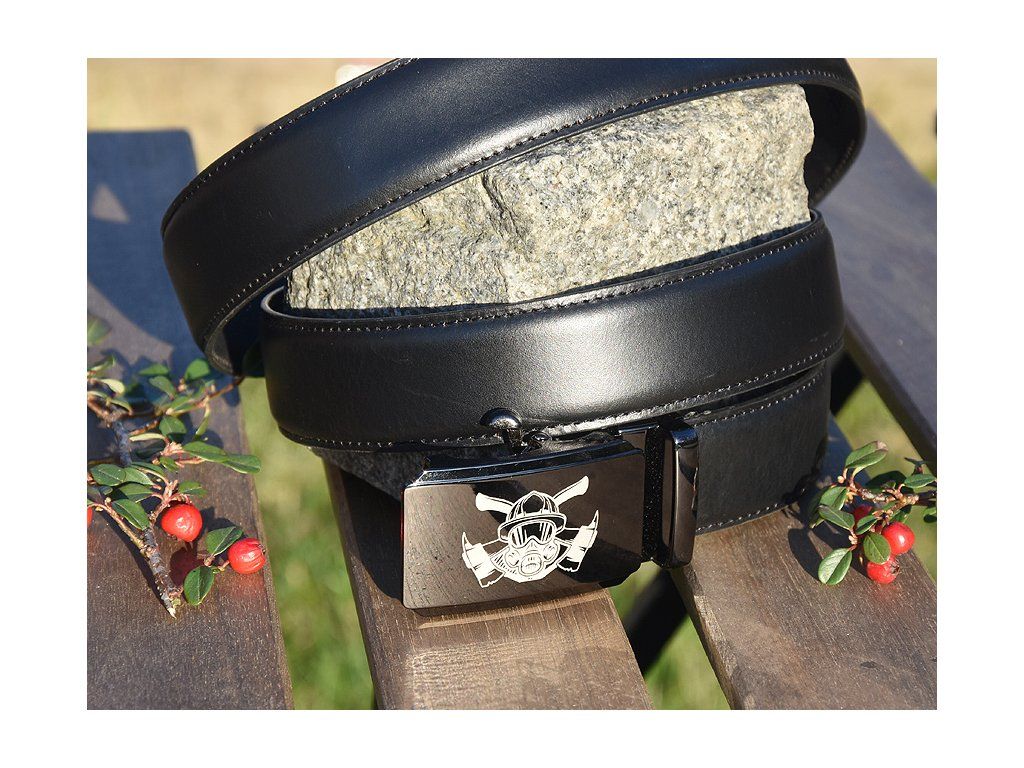 Skórzany elegancki pasek "Strażacy 05" czarny