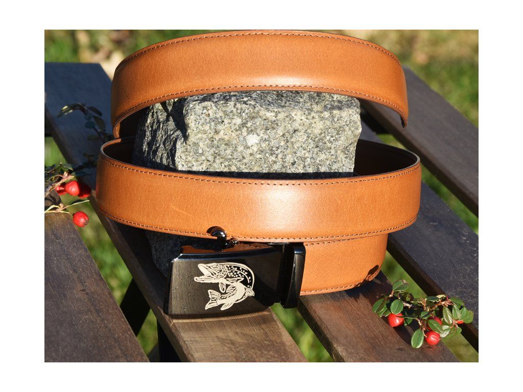 Skórzany elegancki pasek "Szczupak" jasnobrązowy
