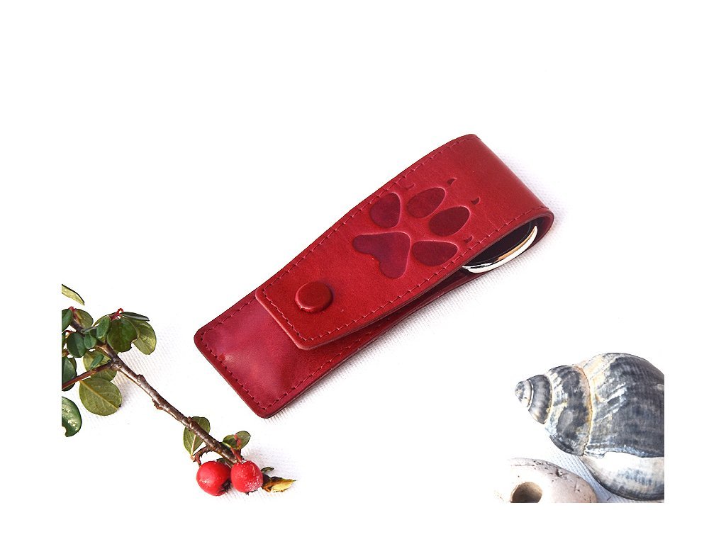 Stalowy zestaw do manicure osobistego z pilnikiem, pęsetą i nożyczkami. Zawsze gotowy do podróży w skórzanym etui.