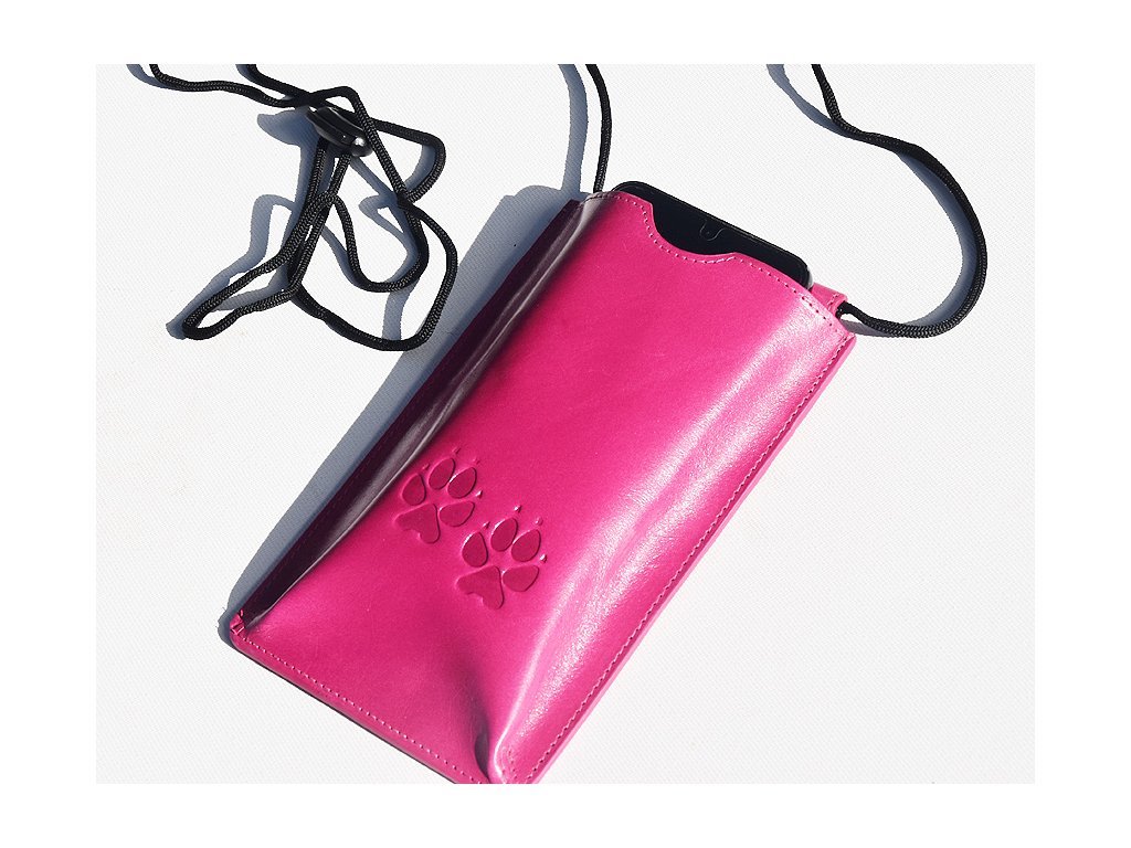 Torebka na telefon etui na ramie "Ślady psów" fuksja
