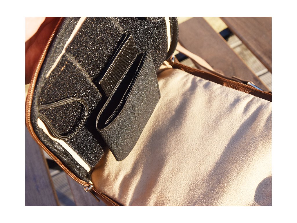 Duża główna kieszeń + ukryta kieszeń z tyłu z możliwością zamocowania kabury na małą broń.