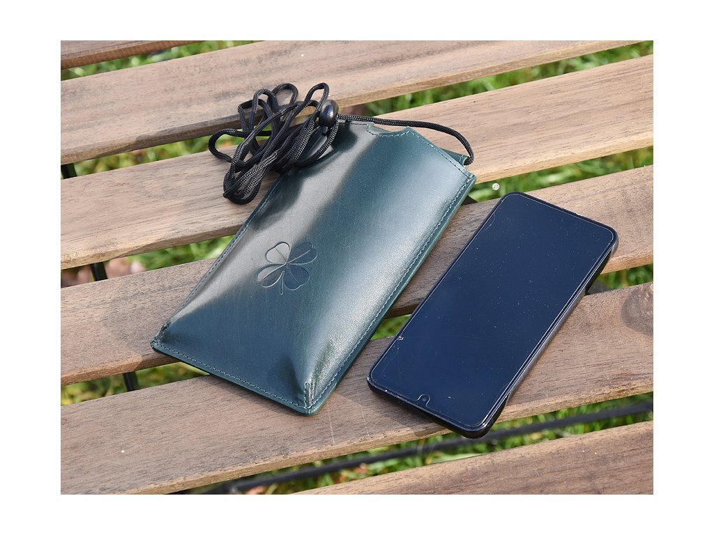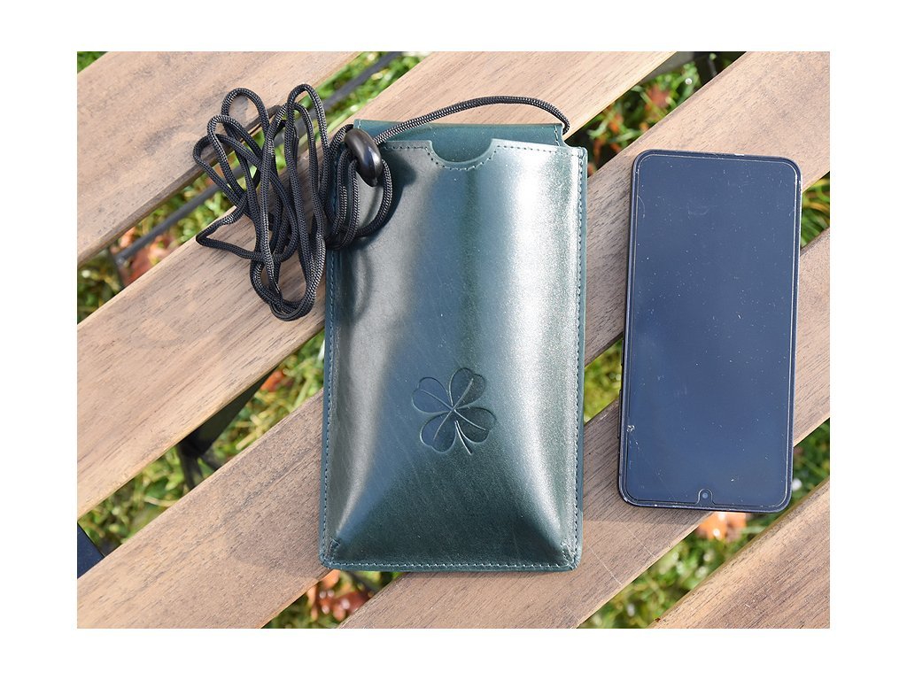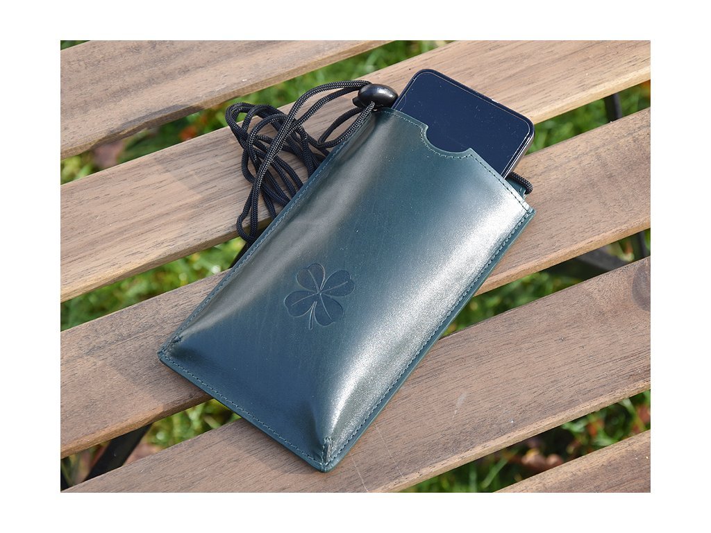 Torebka na telefon etui na ramie "Czterolistna koniczynka" ciemnozielona